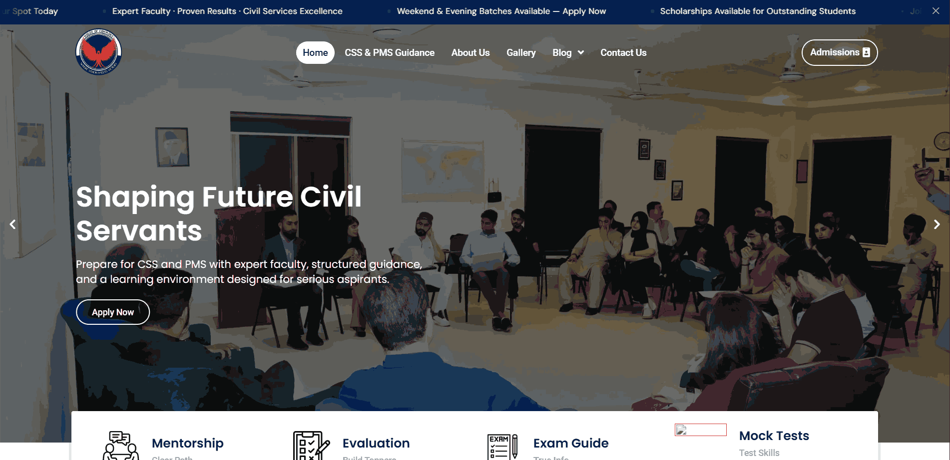 The CSS preparation space in Pakistan is extremely crowded with established players like KIPS, NOA, CSPs Academy, Officers Open Academy, Nova, and Elite CSS Academy all competing for the same aspirants. Building a website for a newer academy required clear differentiation and strong trust signals: