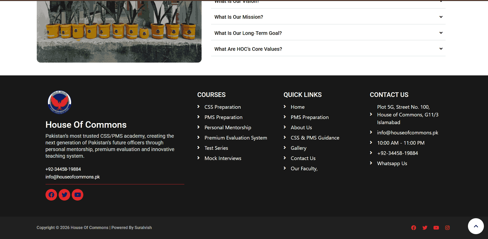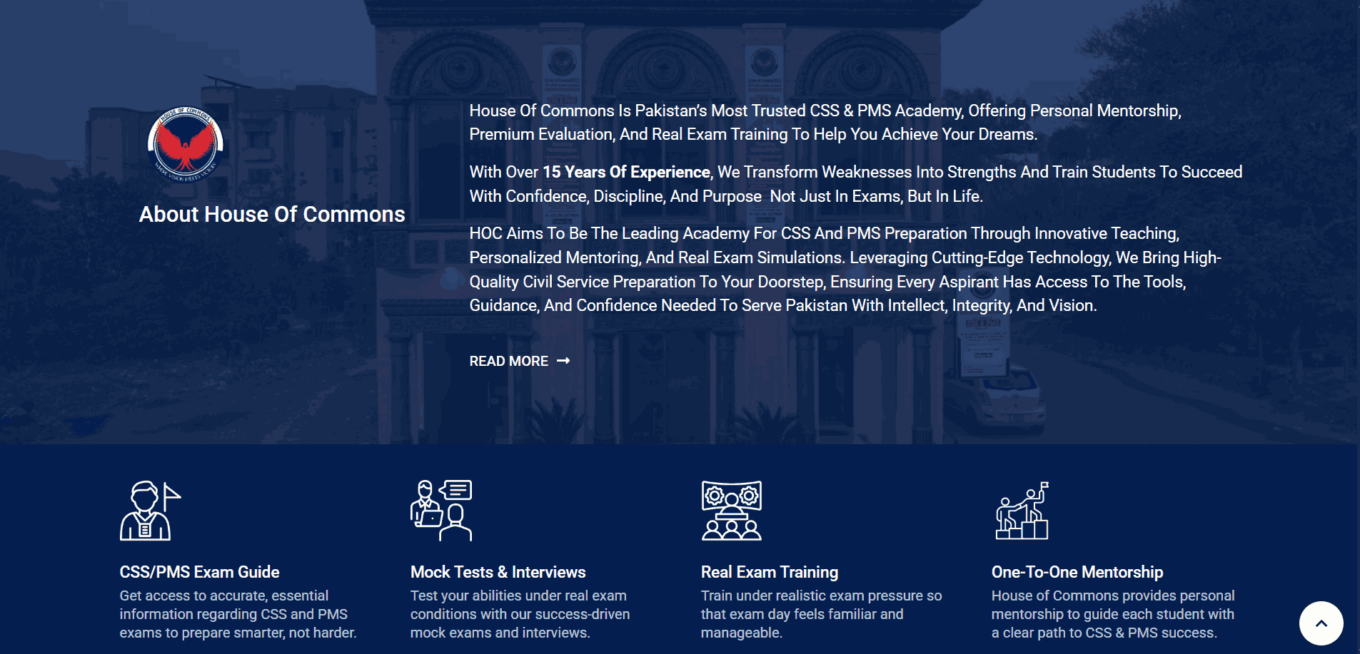 Surlavish was hired to design and develop a complete professional website for HOC that reflects its premium positioning in a competitive market of CSS preparation institutes across Pakistan. The website needed to communicate HOC’s unique methodology, showcase its distinguished faculty, and drive admissions inquiries from serious CSS and PMS aspirants across the country.